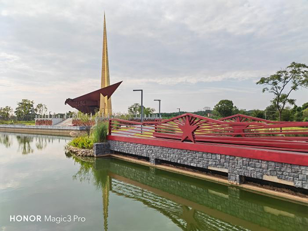這是早上8點(diǎn)左右拍的,為多云天氣,太陽(yáng)也被夾在云層中。榮耀Magic3 Pro將色彩控制得很棒,尤其是那紅星的顏色很自然。