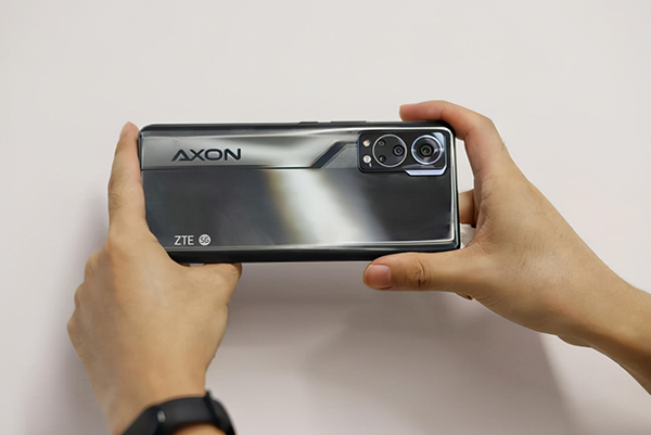 我入手的是中興Axon30 5G的黑曜配色,8+128G版本,拿到手的最大感覺就是溫潤如玉。雖然機(jī)身是全黑的配色,但在不同的光線下還會(huì)流溢出迷幻的紫綠色光暈反射,搭配背后的銀色logo簡約線條,頗有幾份賽博朋克的味道,是當(dāng)下年輕人會(huì)喜歡的質(zhì)感。