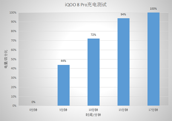 很多朋友或許和我一樣有過這樣的經(jīng)歷,早上起晚了或者著急出門時,才發(fā)現(xiàn)手機電量不足,這時候給手機充電倘若需要漫長等待就會讓人特別抓狂。值得欣喜的是,iQOO 8 Pro這次帶來的充電表現(xiàn)相當出色,“回血”速度相當優(yōu)秀。