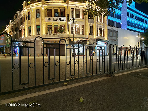 來到夜間,榮耀Magic3 Pro不僅能夠?qū)艄膺M(jìn)行有效的壓制,防止畫面過亮,對較暗部分的處理也十分到位。從下面的樣張可以看出,它拍出的透明墻體十分通透,天空也沒有很明顯的噪點。