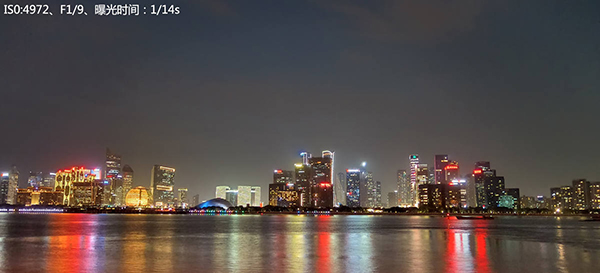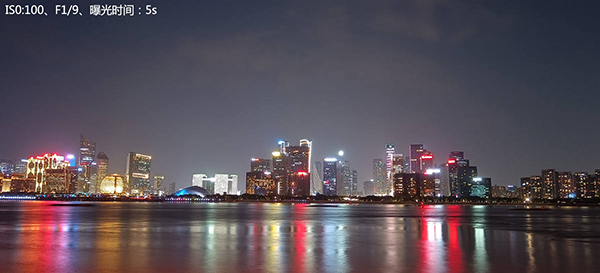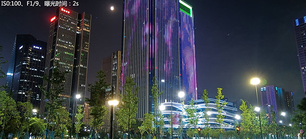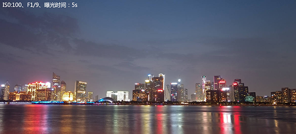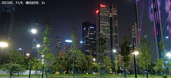 而另外使用專業(yè)模式,人為地將ISO值設置為100這樣一個較小的值,再通過延長曝光至5秒(最長可延長至8秒)從而拍攝出純凈的夜間照片。