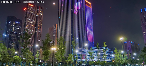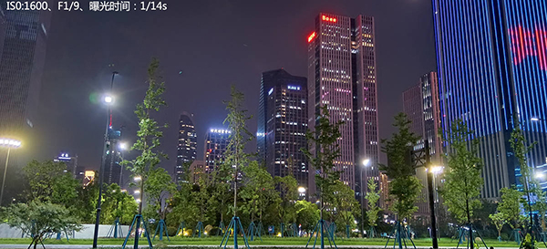 默認的拍照模式會AI智能識別出夜景場景,將ISO值調(diào)高至2000以上,拍攝出這樣的照片。