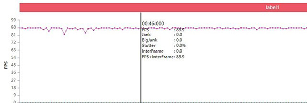 需要注意的是,iQOO 8同樣搭載了獨(dú)顯芯片,通過(guò)插幀技術(shù)也帶來(lái)了更為穩(wěn)定平滑的幀率體驗(yàn)。從實(shí)際測(cè)試來(lái)看,同樣是《和平精英》90fps顯示,當(dāng)我們?cè)陂_(kāi)啟插幀功能后,游戲幀數(shù)曲線(xiàn)確實(shí)會(huì)更平緩,卡頓更少。