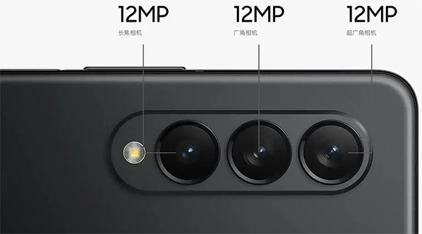 經(jīng)典的「廣角+長(zhǎng)焦+超廣」三攝組合,單純從數(shù)字上看,似乎跟前代相比沒(méi)有任何提升,不過(guò)主攝如今支持最高8K 24fps規(guī)格拍攝視頻,也算是一大亮點(diǎn)了。三星Z Fold3的后置鏡頭模組中的三顆攝像頭均采用的是1200萬(wàn)像素鏡頭,分別是廣角鏡頭、超廣角鏡頭和2倍長(zhǎng)焦鏡頭,這個(gè)設(shè)計(jì)到是和iPhone 12 Pro十分相似。