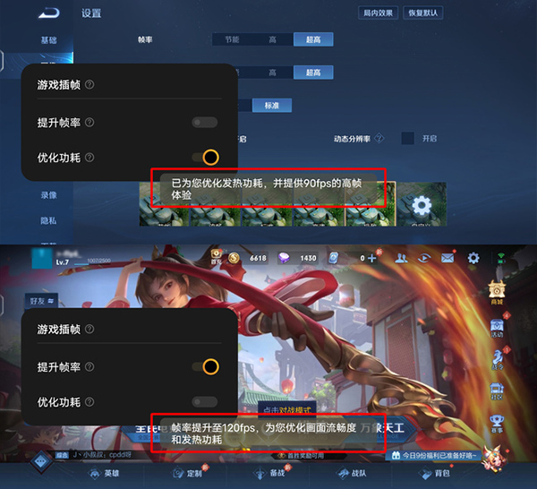 使用熱門(mén)手游《王者榮耀》實(shí)測(cè),選擇「超高幀率+超高分辨率+極致」畫(huà)面預(yù)設(shè),首先是體驗(yàn)王者榮耀原生90幀畫(huà)面。