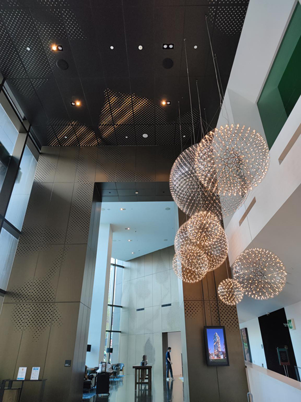首先我們來看看白天的表現,毫無疑問,在光線充足的場景下MIX4的發(fā)揮明顯要比目前主流的大底大像素面積的方案要出色不少,我們可以看到酒店大堂的建筑線條和右上角的裝飾燈的線條都清晰可見,在頂部的暗處也很少有可見的噪點。