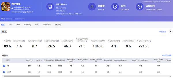 此外,我還測(cè)了一下iQOO 8在運(yùn)行游戲時(shí)的幀率數(shù)據(jù),它的游戲幀率穩(wěn)定性也讓我深感滿意。從下面的幀率數(shù)據(jù)圖可以看到,這款手機(jī)的游戲平均幀率為89.6幀,可見(jiàn)游戲全程的幀率都很穩(wěn)定。