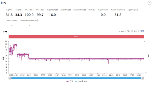 在最高畫質(zhì)的《原神》中,隨著機(jī)身溫度變化,小米MIX4會(huì)主動(dòng)將游戲幀率從60fps降低至40fps或30fps,半小時(shí)的游戲中保持31.8fps的平均幀率,游戲過程非常穩(wěn)定,不會(huì)因?yàn)榇蠓▌?dòng)和溫度升高而帶來不適應(yīng)。