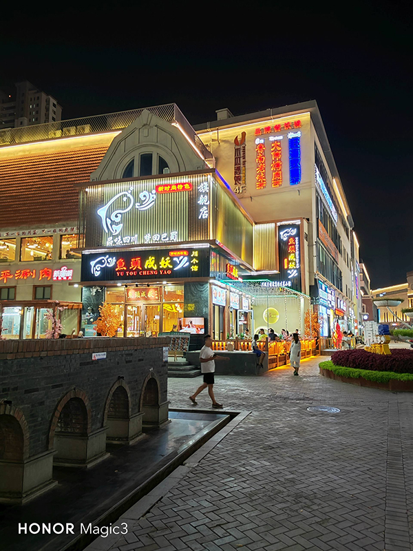 夜景拍攝方面,說實話榮耀Magic3的夜景調(diào)教尚還在持續(xù)優(yōu)化中,相對于華為P50 Pro還是稍遜一籌。不過在同價位的機型中,夜景表現(xiàn)還是可圈可點的,色彩還原度高,高光壓制到位,暗處細節(jié)清晰可見,整體成像也很討喜,往往不用P圖就可直接發(fā)往朋友圈。