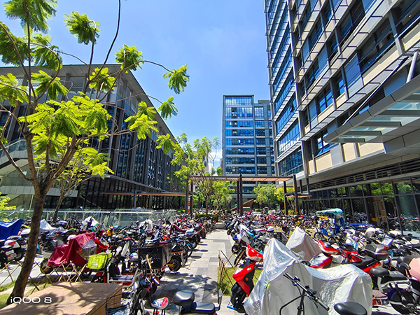 超廣角鏡頭,就針對更廣闊的場景,用戶能利用取景框一次性收納更多的細(xì)節(jié),更大的畫面。上圖為iQOO 8超廣角鏡頭實(shí)拍,在中午這樣的烈日環(huán)境下,畫面沒有因?yàn)楦吖舛ゼ?xì)節(jié),比如前景中左側(cè)的樹木,還是有明顯的細(xì)節(jié)。當(dāng)然,要是細(xì)節(jié)再多一點(diǎn),就更好了。此外,畫面四周沒有出現(xiàn)畸變,這說明了這顆廣角鏡頭在處理畸變上已經(jīng)很成熟了。