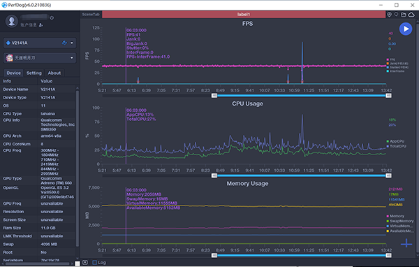 以《天涯明月刀》為例,通過PerfDog的實(shí)時(shí)幀率監(jiān)測(cè),iQOO 8 Pro在游玩時(shí)可以保持40幀滿幀率運(yùn)行,只有載入劇情動(dòng)畫時(shí)有極少數(shù)的卡幀,其余場(chǎng)景下表現(xiàn)都非常穩(wěn)。同時(shí)手機(jī)發(fā)熱控制表現(xiàn)也不錯(cuò),金屬邊框也沒有過于燙手而導(dǎo)致影響發(fā)揮的情況。