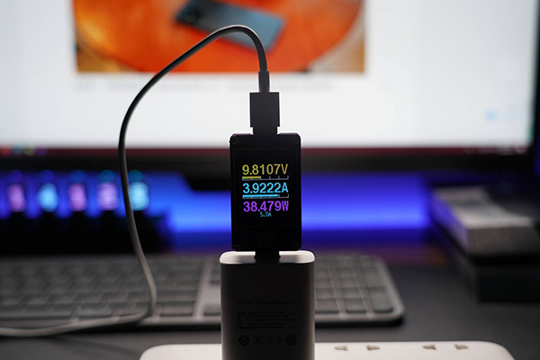 實測從1%開始充電,5分鐘充至17%,30分鐘充至73%,完整充滿耗時51分鐘。充電過程中實際輸出的最高功率為36W,維持1分多鐘后即降至28W,第4分鐘開始降至23~24W區(qū)間,這個輸出功率持續(xù)時間最長,手機顯示充滿后充電器端仍有一段時間的涓流充電。