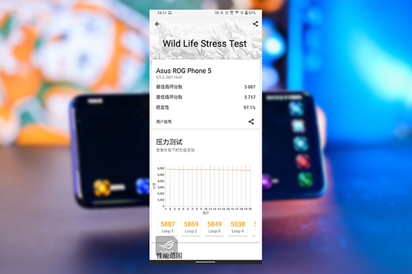 我們直接以3D Mark Wild Life Stress Test來(lái)看下實(shí)際表現(xiàn),經(jīng)過(guò)20輪的測(cè)試之后可以看到,最佳分?jǐn)?shù)為5887分,最低分?jǐn)?shù)為5717分,穩(wěn)定性達(dá)到了97.1,性能表現(xiàn)還是相當(dāng)穩(wěn)定的。