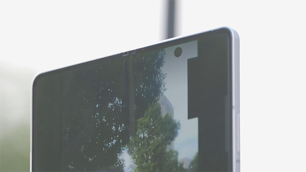三星的屏下攝像頭在純色的背景下,顯現(xiàn)得更加清楚,可以很明顯的感受到,攝像頭所在的區(qū)域的像素與其它區(qū)域的像素有很明顯的區(qū)別。