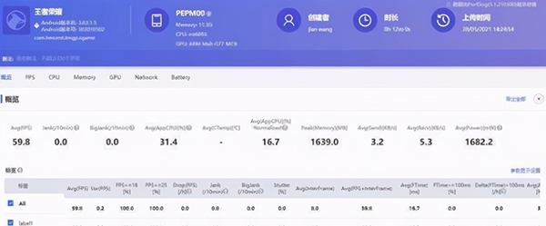 接下來(lái)我們?cè)賮?lái)測(cè)試一下OPPO Reno6 Pro在游戲中的表現(xiàn)。我們先來(lái)測(cè)試《王者榮耀》,將游戲開(kāi)到60幀模式下我們發(fā)現(xiàn)OPPO Reno6 Pro平均幀率為59.8fps,每十分鐘卡頓次數(shù)為0.0,平均每十分鐘卡頓次數(shù)為0.0,能耗值為1682.2,游戲流暢性表現(xiàn)出色,機(jī)身沒(méi)有明顯發(fā)熱,握持手機(jī)時(shí)沒(méi)有感受到在高負(fù)載游戲下機(jī)身的溫度變化,能耗表現(xiàn)出色,在游戲過(guò)程中幀率非常的平滑,高負(fù)載壓力下,畫面內(nèi)多個(gè)人物釋放技能都沒(méi)有出現(xiàn)明顯卡頓掉幀,游戲體驗(yàn)非常棒。