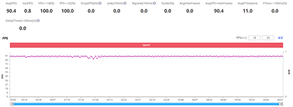 而開(kāi)啟了極致畫(huà)質(zhì)《王者榮耀》在高幀率模式下的性能需求,相比吃雞還要高一些。不過(guò)紅魔6S Pro依舊沒(méi)有被這樣的性能需求難倒,依舊能在游戲之中穩(wěn)定地保持在90Hz的幀率,波動(dòng)幅度很小。