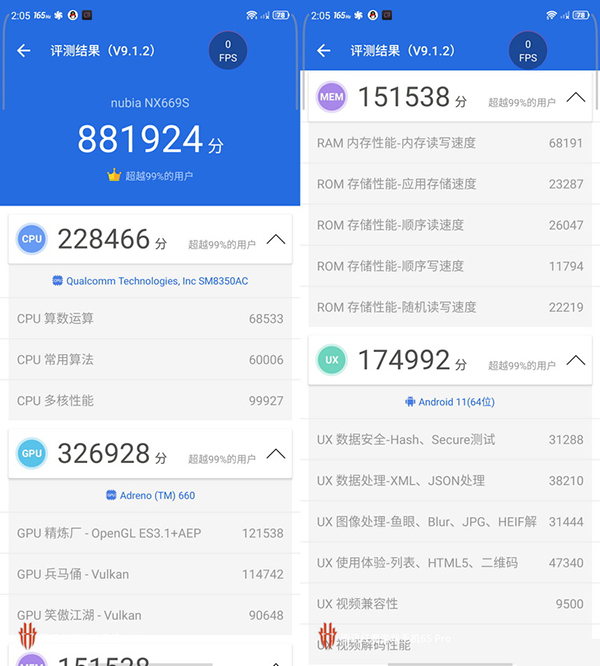當(dāng)然,對于游戲手機(jī)來說,光有最高性能的主控還不夠。就拿紅魔6S Pro為例,其不僅配備了驍龍888 Plus,還全系標(biāo)配“滿血版”LPDDR5-6400內(nèi)存及UFS3.1閃存。