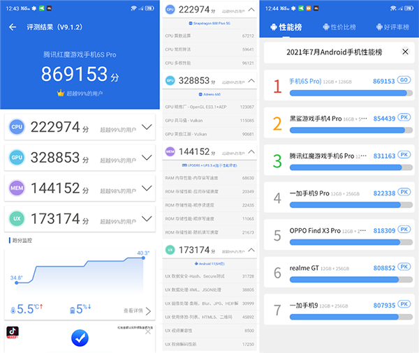 安兔兔跑出了869153分的成績,性能榜單排名第一。