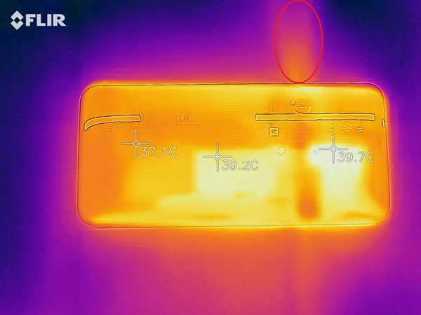 不過,游戲進(jìn)行了20分鐘左右機(jī)身就有微熱的感覺,橫屏握持時(shí),靠近攝像頭的區(qū)域更加明顯,另一側(cè)則相對較好。