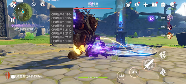 觀察CPU占用情況可以看到,紅魔6S Pro的CPU調(diào)用是比較積極的,多數(shù)時(shí)間八個(gè)核心都在全力以赴,頻率普遍在1800MHz以上。作為參考,部分驍龍888+機(jī)型即使是交戰(zhàn)時(shí)也會(huì)保持在1500MHz附近,并沒有完全發(fā)揮出芯片的全部性能。