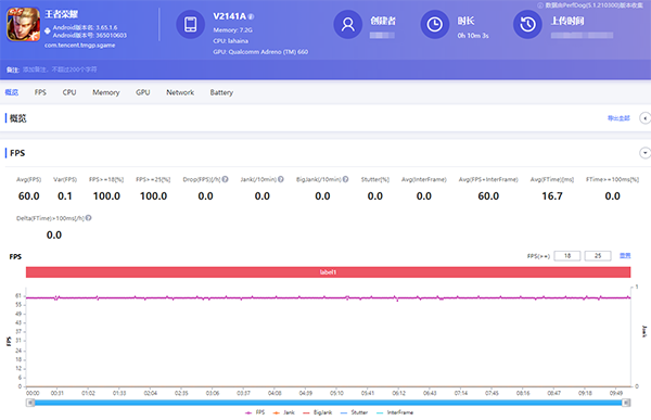 根據(jù)perfdog的測試數(shù)據(jù),iQOO 8 Pro的平均幀率為60幀,運行《王者榮耀》時的幀率極為穩(wěn)定,無論在前期對線還是后期團戰(zhàn),游戲畫面均保持高度流暢。E5、2K屏幕則是游戲體驗的加分項,游戲場景更加細膩,視覺體驗舒適且更具代入感。