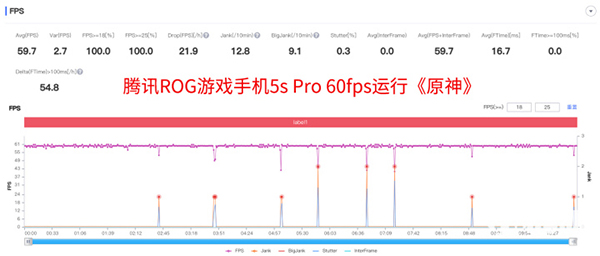 既然運行《使命召喚手游》無壓力,我們繼續(xù)讓騰訊ROG游戲手機5s Pro運行《原神》,結(jié)果如上圖所示,騰訊ROG游戲手機5s Pro依然可以做到60fps運行《原神》,并且?guī)蕩缀鯖]有太大的波動??紤]到很多旗艦機都不能流暢運行《原神》,因此,從這一點,可以明顯感受到騰訊ROG游戲手機5s Pro性能的“恐怖”之處。