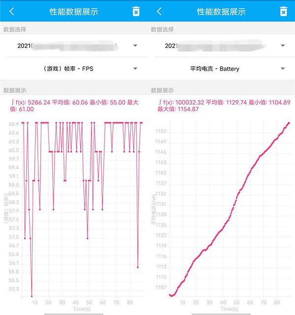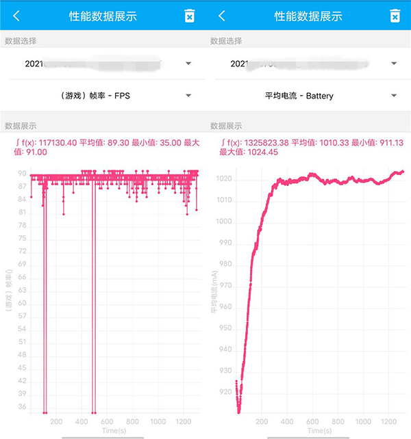 21分鐘的游戲時(shí)間,平均幀率達(dá)到89.30幀。通過幀率曲線,可知該局游戲絕大多數(shù)時(shí)間幀率都在80幀以上。簡(jiǎn)單來說,基本能在最高規(guī)格下穩(wěn)定的玩《王者榮耀》。通過平均電流1010.33mA,可以大致估算出這局游戲的平均功耗3738.221mW(近似值,下同)。在性能模式下,這個(gè)功耗還是能夠接受。