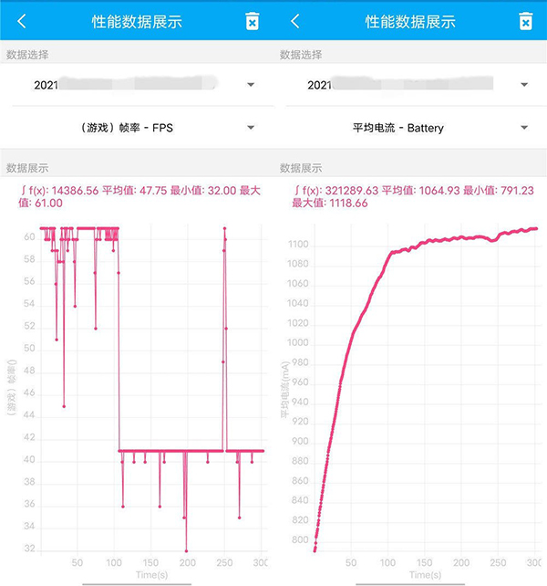跑圖總時(shí)長(zhǎng)5分鐘出頭,平均幀率只有47.75幀。觀察幀率曲線,可以發(fā)現(xiàn)我們跑圖進(jìn)行到快到2分鐘的時(shí)候出現(xiàn)了鎖幀,60幀直接降到41幀,看樣子vivo X70 Pro+在高負(fù)荷加載地圖資源時(shí)有點(diǎn)Hold不住。平均電流1064.93mA,乘上3.7V的電壓算出平均功耗大致是3940.241mW,比玩《王者榮耀》時(shí)略高。