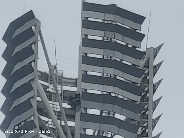 通常情況下,5倍光學變焦是現在手機長焦鏡頭上可以最明顯看出差異點的部分了,因為如果是混合變焦的話,放大之后你是看不清建筑物的邊緣線條的,但光學變焦在5倍的情況下即使100%放大照片,建筑物的邊緣線條也依然是橫平豎直,沒有任何虛化和斷層,細節(jié)部分清晰可見。