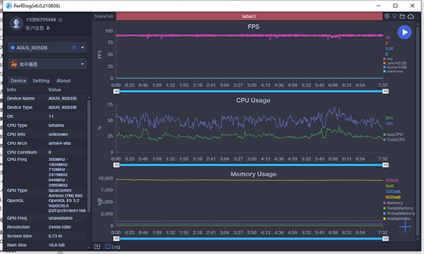 通過性能狗和游戲精靈可以看出,游戲過程中,幀率基本穩(wěn)定在60fps,偶爾有波動,但是也沒有低于58幀。