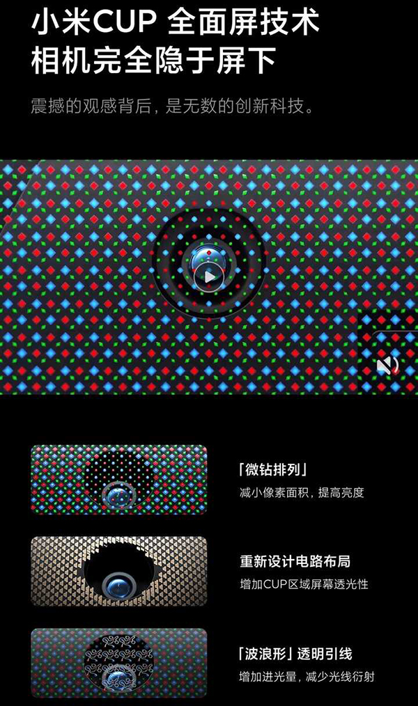 來(lái)談?wù)勑∶譓IX4這塊CUP全面屏(Camera under Panel,也就是屏下攝像頭啦),自從阿米在小米9Pro上做出了屏下攝像頭的工程機(jī)以來(lái),我就一直在期待著量產(chǎn)的那一天,所以在看到MIX4經(jīng)過(guò)三次技術(shù)迭代終于量產(chǎn)了之后,我是十分開(kāi)心的。