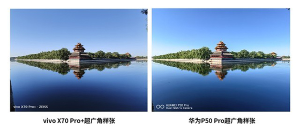 在超廣角樣張的對比中,vivo X70 Pro+的超廣角鏡頭憑借高像素的優(yōu)勢在畫面細節(jié)表現(xiàn)上明顯強于華為P50 Pro的超廣角成像效果,同時在畫面色彩風格方面兩者的超廣角鏡頭表現(xiàn)基本與主攝保持了一致。