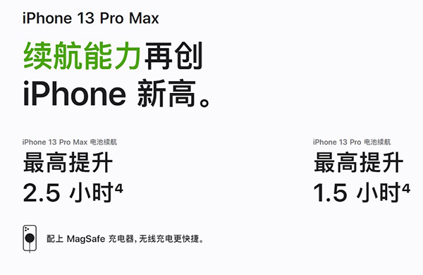 iPhone 13 Pro Max續(xù)航將比上代12 Pro Max最高提升2.5個(gè)小時(shí)。