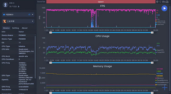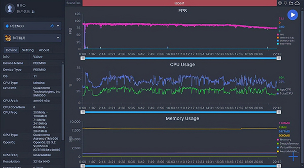 當然,跑分只是一個參考數據,那么OPPO Find X3 Pro攝影師版在真實的游戲表現中,又如何呢?我們選取了當下的大熱的《王者榮耀》以及《和平精英》進行實際測試,兩款游戲在畫質以及幀數配置上都處于拉滿的狀態(tài)下,游戲實際幀數表現如下。