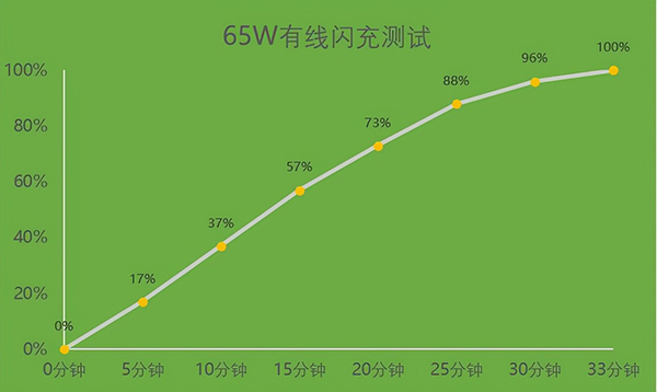 雖然大家對(duì)65W的充電過程已經(jīng)十分熟悉了,但考慮到它升級(jí)搭載了ColorOS 12全新系統(tǒng),這里我還是測(cè)試了一下從0充至100%電量的過程,結(jié)果如下圖所示,實(shí)際充到100%僅需32分鐘,算是相當(dāng)快速。