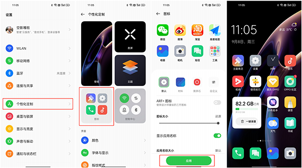在流暢性升級上,ColorOS 12也迎來了全新無邊界設(shè)計,加入亞克力圖標(biāo),圖案與形狀與ColorOS 11依舊非常相似,但細(xì)看可以發(fā)現(xiàn)圖片有縱向拉出了一點點,同時光影效果與細(xì)節(jié)處理得更真實。此外,新系統(tǒng)還升級了速覽卡片、降噪設(shè)計、Omoji、和無限息屏2.0等功能。