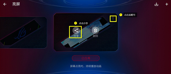 在手機(jī)的找到【智控中心】-點(diǎn)擊【控制臺】-點(diǎn)擊【ROGVision】就可以自定義ROG Vision炫彩個性視窗,其擁有6大場景、3款風(fēng)格、10種濾鏡任由玩家自定義,當(dāng)我們設(shè)置完成之后,回到亮屏場景設(shè)置界面-找到制作的ROGVision-點(diǎn)擊【應(yīng)用】即可。就例如在亮屏場景下,選擇“屏幕”濾鏡效果,當(dāng)手機(jī)在亮屏?xí)r候有層次感地呈現(xiàn)圖片,相當(dāng)?shù)撵趴?,每次亮屏有儀式感滿滿。