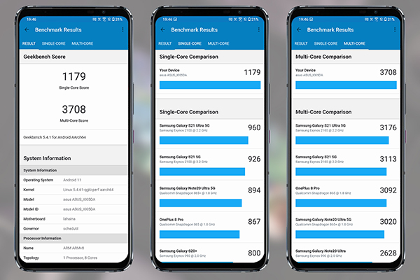 高通驍龍888Plus應(yīng)該是當(dāng)前性能最強(qiáng)勁的芯片之一,5nm工藝制程,采用1顆CortexX1超大核+3顆A78大核+4顆A55中核的三叢集八核心架構(gòu)設(shè)計(jì),主頻最高2.99GHz;搭載第六代AI引擎,DSP算力從驍龍888的26TOPS提升到32TOPS,運(yùn)算能力提升了約20%。Geekbench5是一款測(cè)試處理器性能的跑分軟件,騰訊ROG游戲手機(jī)5s單核得分1179分,多核得分3708分,榮登雙榜第一的寶座。毫無疑問,驍龍888Plus處理器的性能屬于頂級(jí)水平。