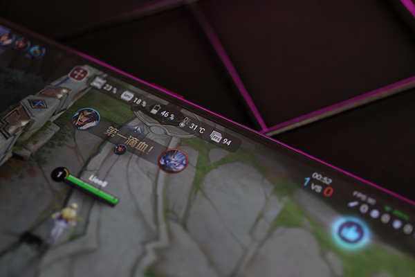 《王者榮耀》開啟最高畫質和幀率,游戲平均幀率94FPS,游戲全程穩(wěn)定90-94FPS之間,同樣沒有發(fā)現卡頓、掉幀現象。即使在多人團戰(zhàn)的爆炸場景中,游戲畫面依然可以保持90FPS以上。整局游戲的CPU平均占用率只有23%左右,核心溫度31℃。由此可見,騰訊ROG游戲手機5s運行全畫質《王者榮耀》毫無壓力。