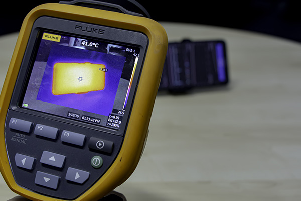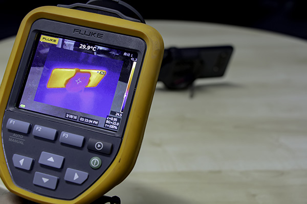 在進行了15分鐘的疲勞測試以后,手機電池溫度上升了10℃,電量降低10%,但是CPU主頻卻沒什么大礙,只是此時并沒有達到熱平衡,紅外影像也顯示正面溫度達到了42.1℃,背面溫度39.2℃,金屬邊框溫度41.3℃,并且還在上升。