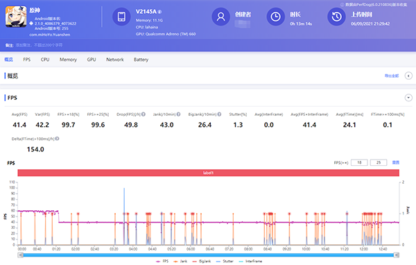 至于手機(jī)實(shí)際的游戲性能表現(xiàn),筆者也是用《原神》進(jìn)行一番測(cè)試,在開啟高畫質(zhì)和60幀率設(shè)置前提下,vivo X70 Pro+整體游戲表現(xiàn)只能說中規(guī)中矩。1分20秒之前,游戲整體幀率還能維持在60幀左右,而1分20秒之后,游戲幀率突然下降至40幀,并保持這一趨勢(shì)直至游戲結(jié)束,中間由于打怪跑圖偶有波動(dòng),但影響可以忽略不計(jì)。