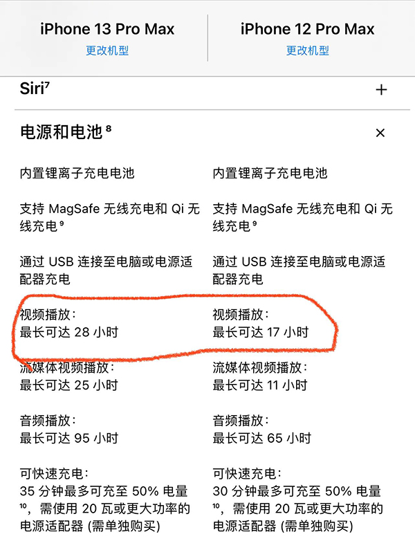 甚至iPhone 13 Pro都比12 Pro Max多出5個小時?那為什么發(fā)布會卻說13 Pro Max只比12 Pro Max多2小時?但是仔細(xì)想想也沒啥不可能?
