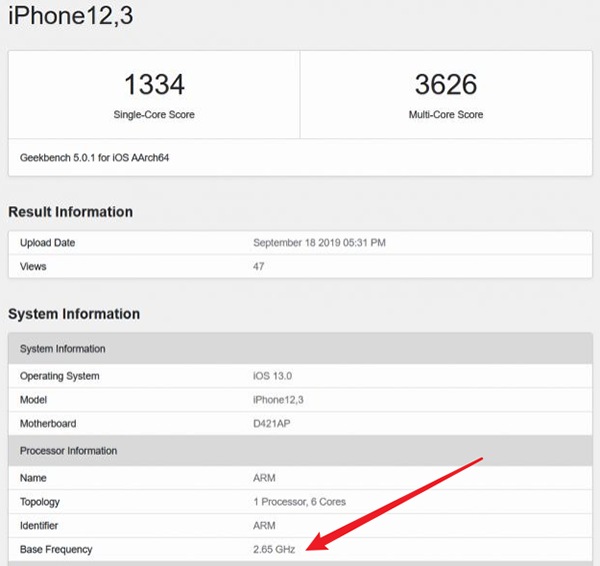 在CPU主頻為2.93GHz時,A15在Geekbench5 中測試的單核、多核跑分是1596,4558。作為對比,A13在CPU主頻為2.65GHz時,在Geekbench 5中測試的單核、多核跑分是1334,3626。