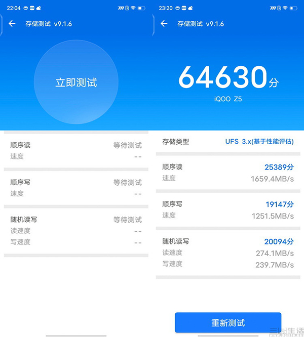 不僅如此,此次在iQOO Z5上除了全系標(biāo)配LPDRR5-6400內(nèi)存外,如今一眾旗艦機(jī)型所配備的UFS 3.1閃存,同樣也是全系標(biāo)配,并且Z5此次所使用的UFS 3.1閃存本身也不馬虎。無論在官方公布的資料、還是從我們的實(shí)際測試結(jié)果來看,都顯示其是當(dāng)前最新一代的三星V6版UFS 3.1,速度比起其他版本也要更快一些。