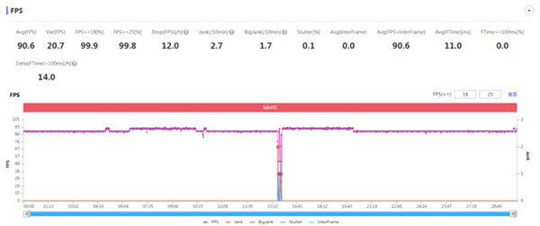 (王者榮耀-節(jié)能畫質(zhì)+超高幀率模式游戲30分鐘,平均幀率:90.6fps)