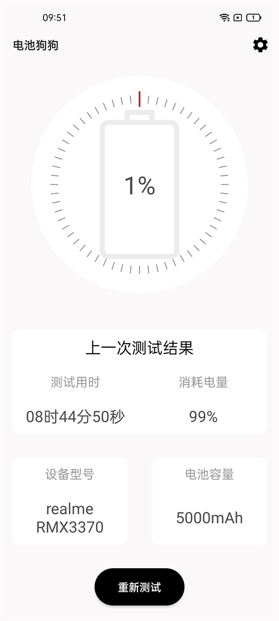對于續(xù)航情況,我們使用專業(yè)續(xù)航測試工具——電池狗狗進行測試。