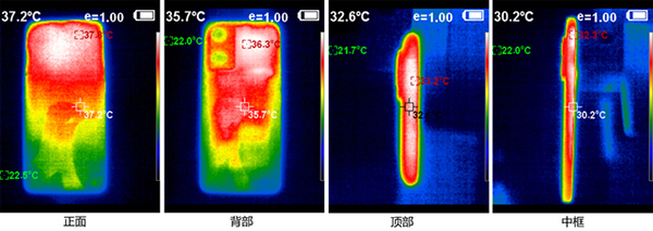 1小時(shí)《原神》后,真我GT Neo2正面最高溫度37.8℃,背部最高溫度36.3℃,頂部33.2℃,底部32.2℃,左右邊框溫度在32℃左右。