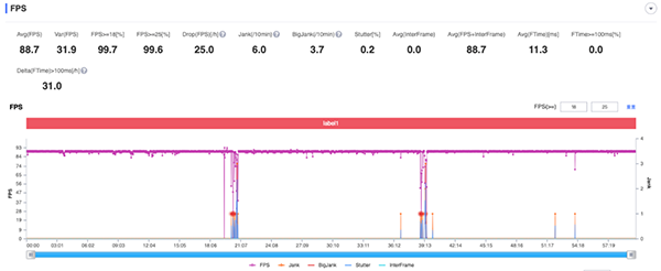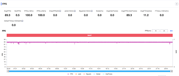 真我GT Neo2在游戲期間基本上是全程緊貼滿幀線跑,一整個小時下來沒有絲毫的卡頓感,平均幀率為88.7FPS。