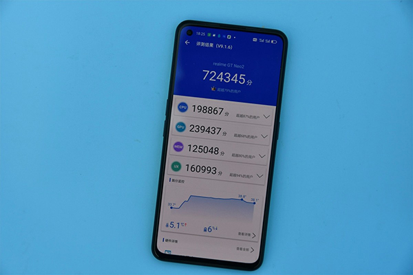 realme真我GT Neo2搭載驍龍870處理器,該芯片大家應(yīng)該比較熟悉了,是高通旗艦芯片,主頻3.2GHz,芯片口碑很好,采用臺積電7nmEUV工藝制程,功耗和散熱優(yōu)化相當(dāng)出色,相比于驍龍865整體提升10%,該機(jī)配備UFS3.1閃存,寫入性能速度進(jìn)一步提升,功耗還更低。最高配置12GB+256GB版,這次測試也是這個(gè)版本,支持運(yùn)存拓展技術(shù),等效于19GB運(yùn)存體驗(yàn)。不服就跑個(gè)分,環(huán)境溫度30.1攝氏度下,跑分達(dá)到724345分,超過72萬分。