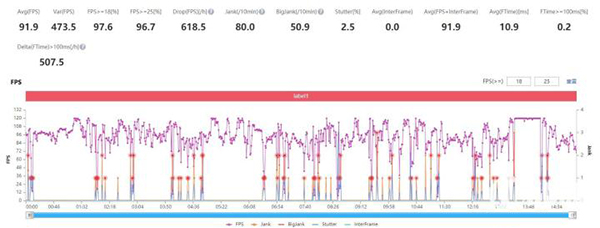另外,iQOO Z5在一些游戲中提供了可變分辨率渲染(VRS)技術(shù)支持,該技術(shù)能夠針對游戲畫面的不同區(qū)域進(jìn)行不同策略的渲染,從而在確保游戲畫質(zhì)的前提下,提升游戲幀率并降低功耗和發(fā)熱,該項功能此前僅在驍龍888旗艦機(jī)型中支持。比如在游戲《戰(zhàn)神遺跡》中,iQOO Z5在開啟VRS后,可以在完美畫質(zhì)下跑滿120幀,在15分鐘的游戲平均幀數(shù)為91.9幀,并且全程在120幀的極限幀率下進(jìn)行渲染,沒有因為發(fā)熱使系統(tǒng)限制最高幀數(shù)。15分鐘過后的正面溫度41.8度,背面溫度40.7度,發(fā)熱控制相當(dāng)不錯。